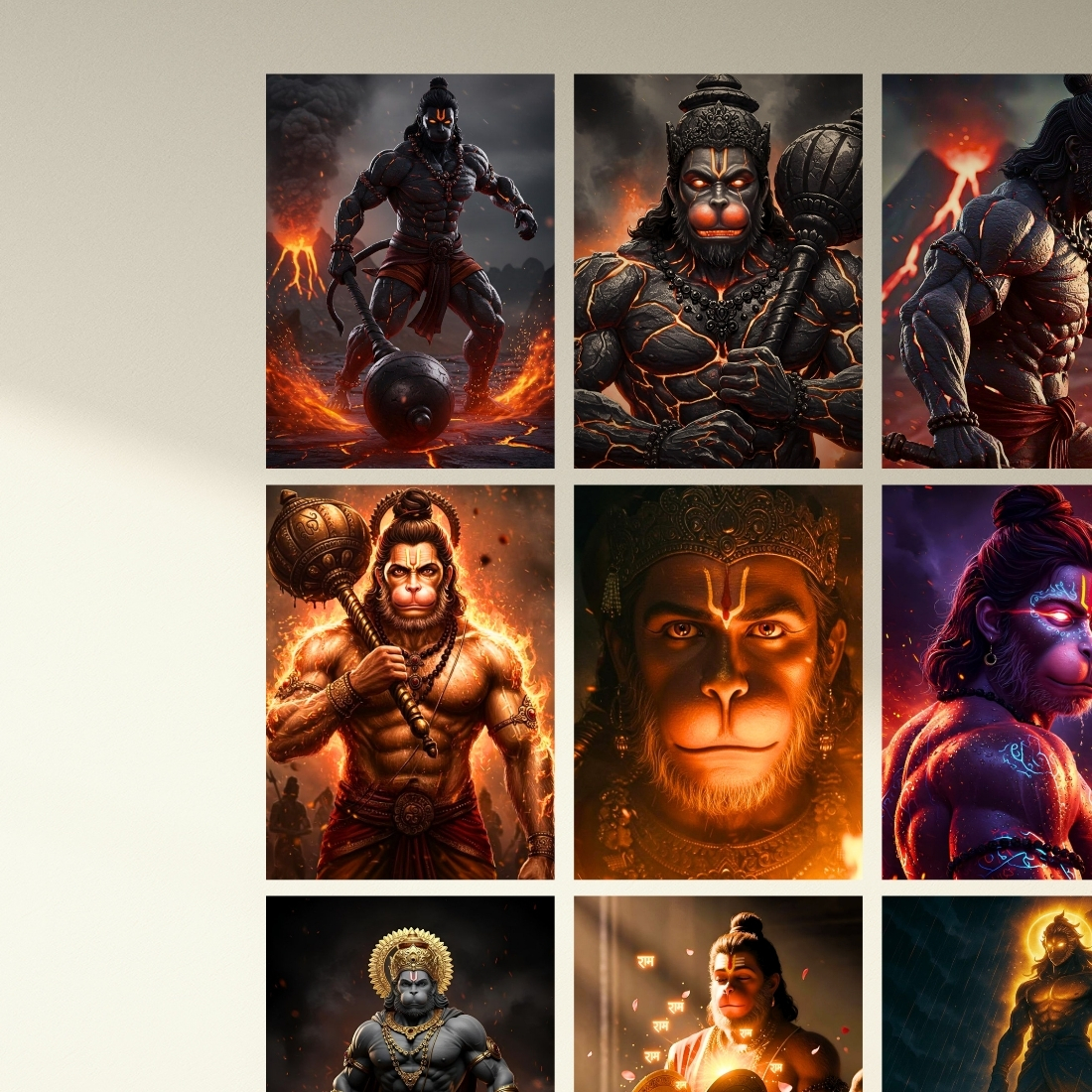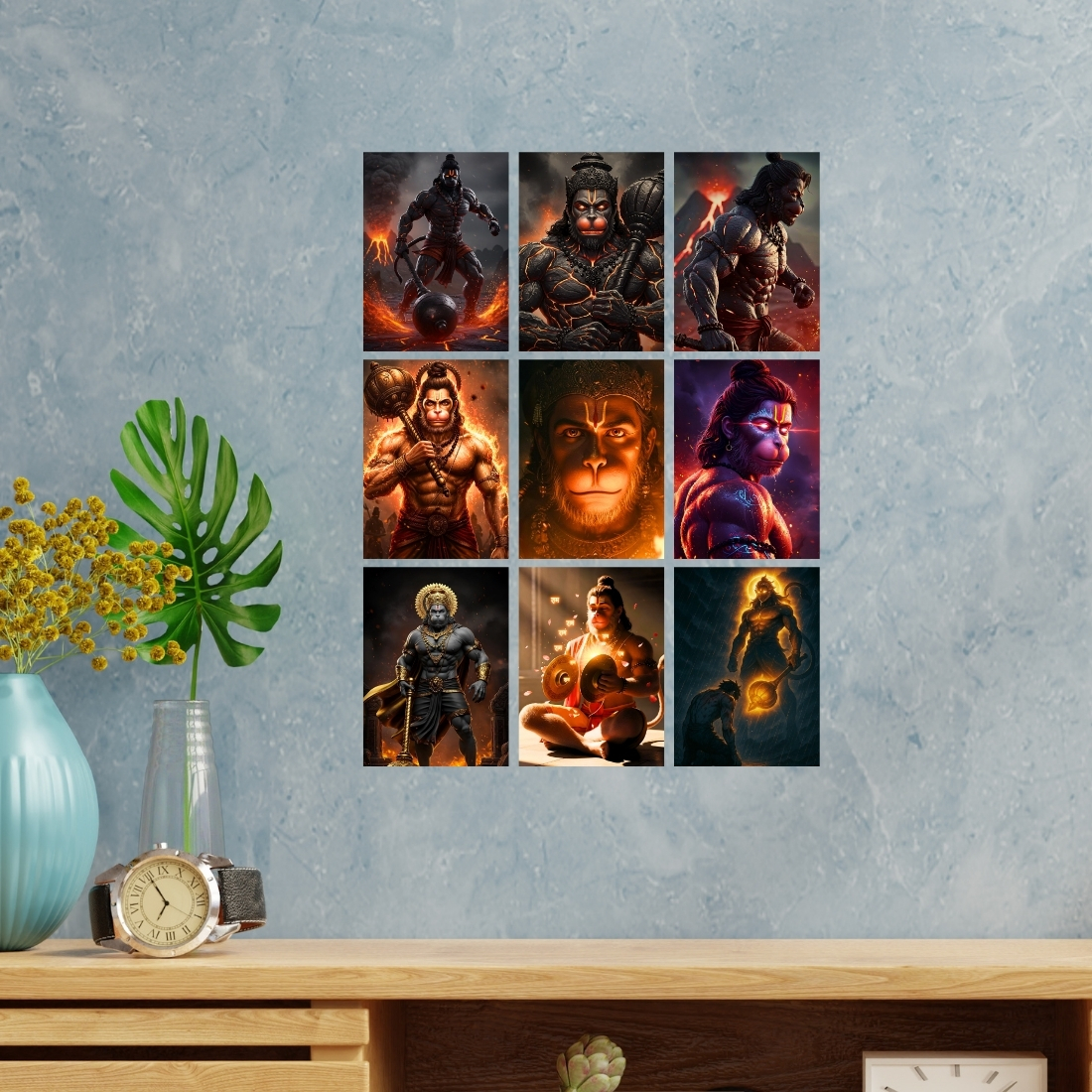 • Bajrangbali Poster Kit – 9 powerful and inspiring Hanuman Ji posters designed for divine and motivational spaces.